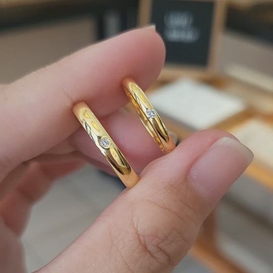 Customizable All Metal Wedding Band with Flush set Round Birthstone