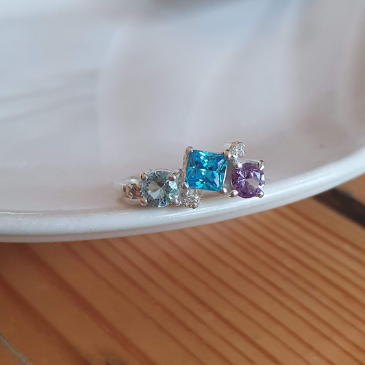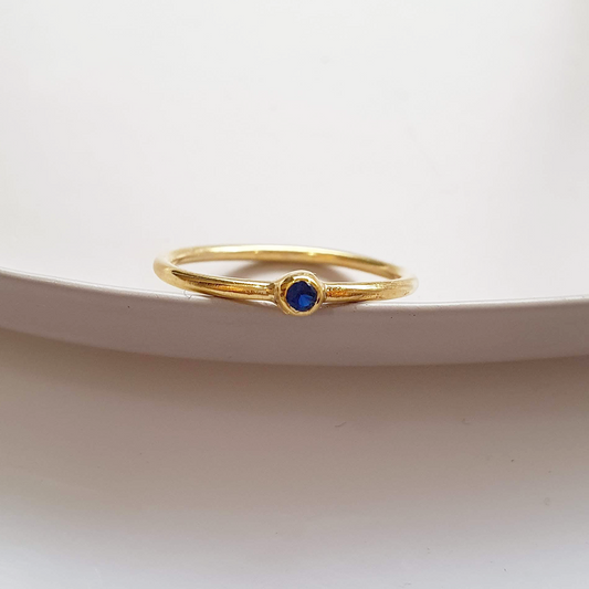 Customizable Round Cut, Bezel Set, Skinny Band Gemstone Ring