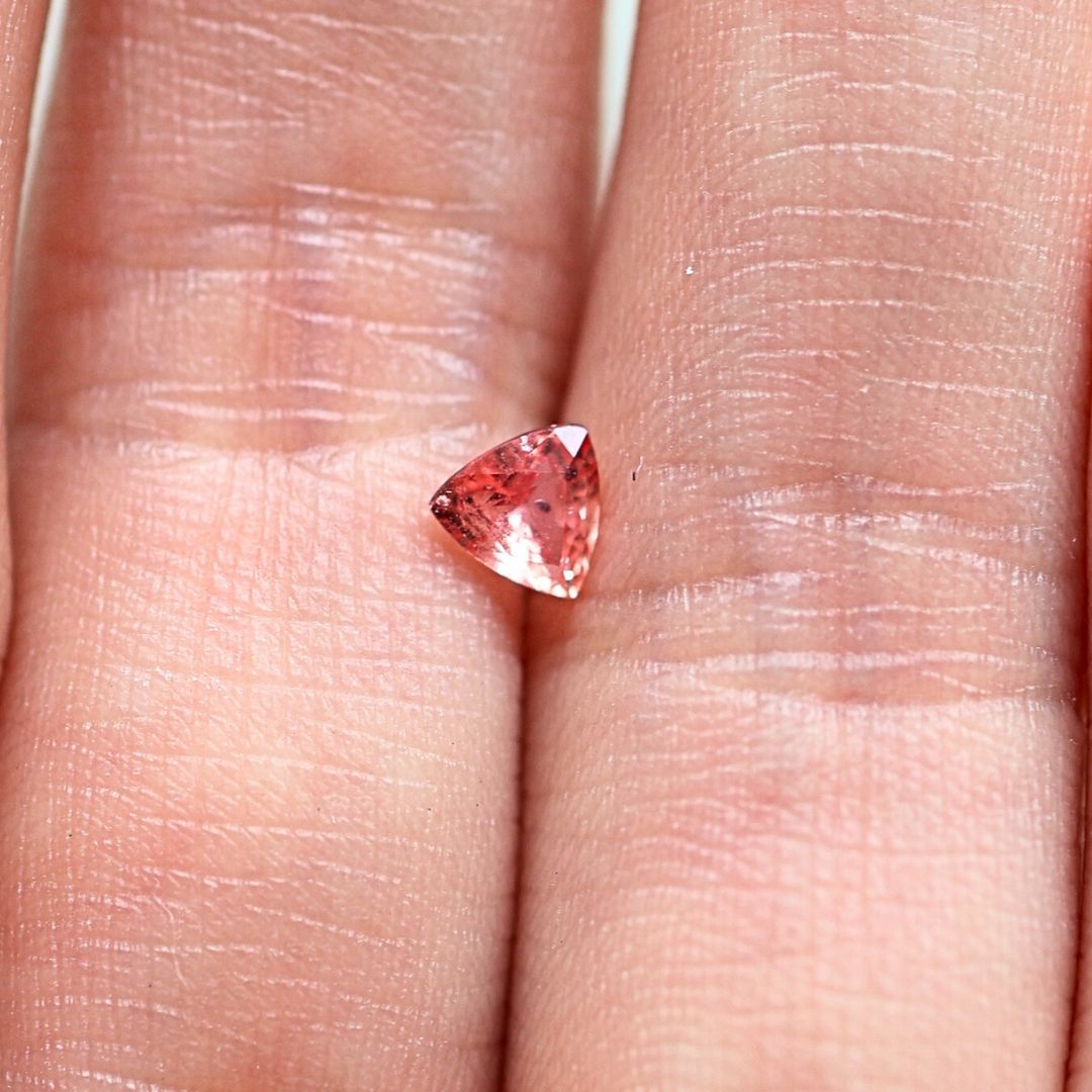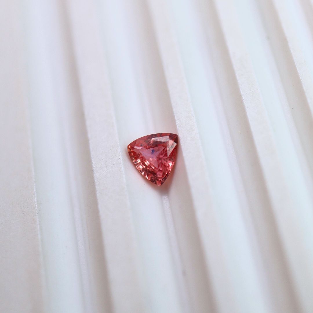 This 0.43ct Orangey Pink, Padparadscha Sapphire is a stunning 5 x 4.5mm in size, Heat treated and from Madagascar in origin.