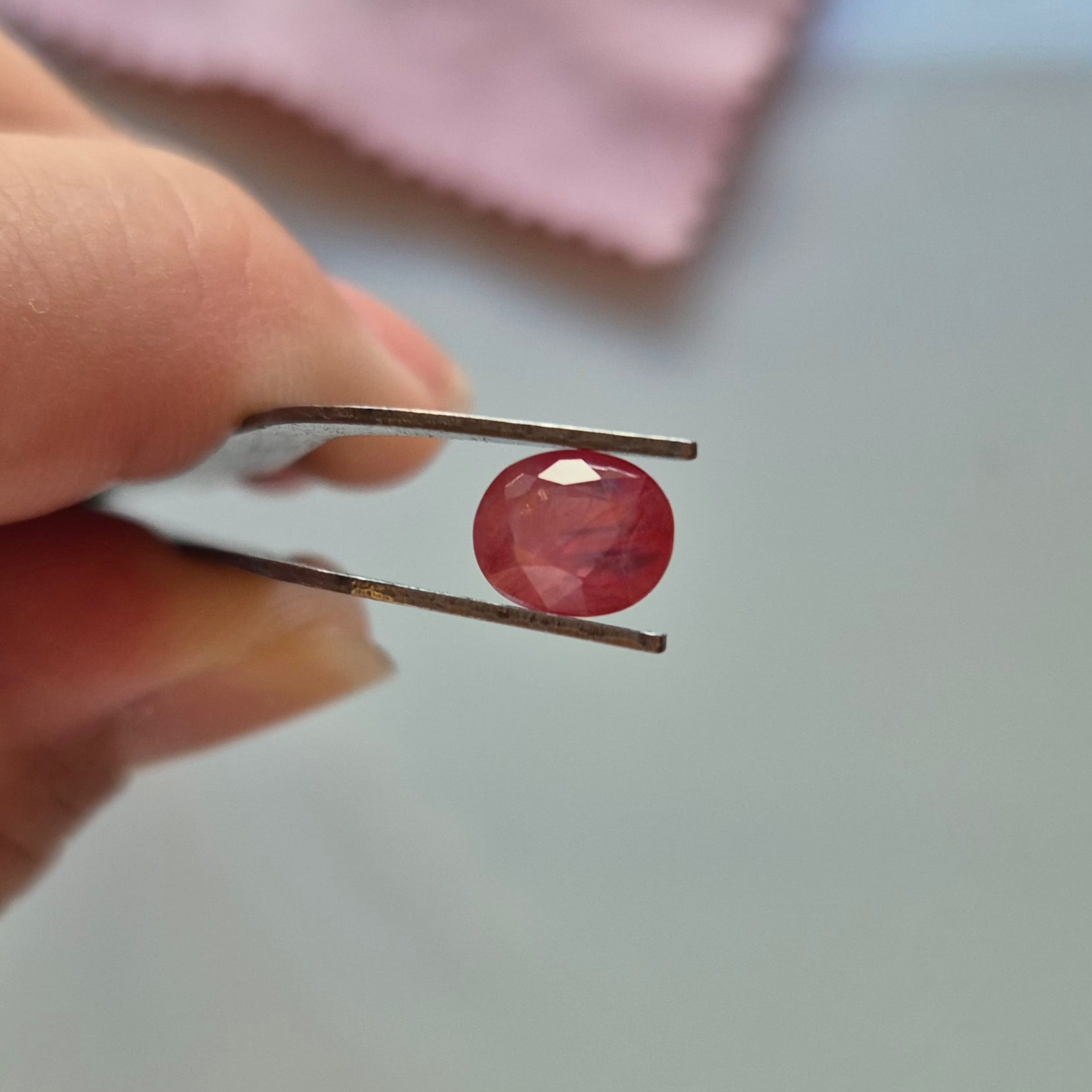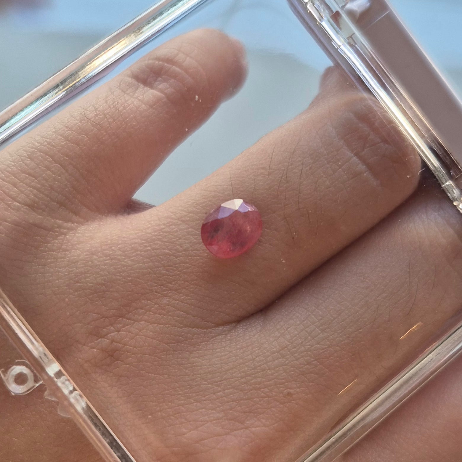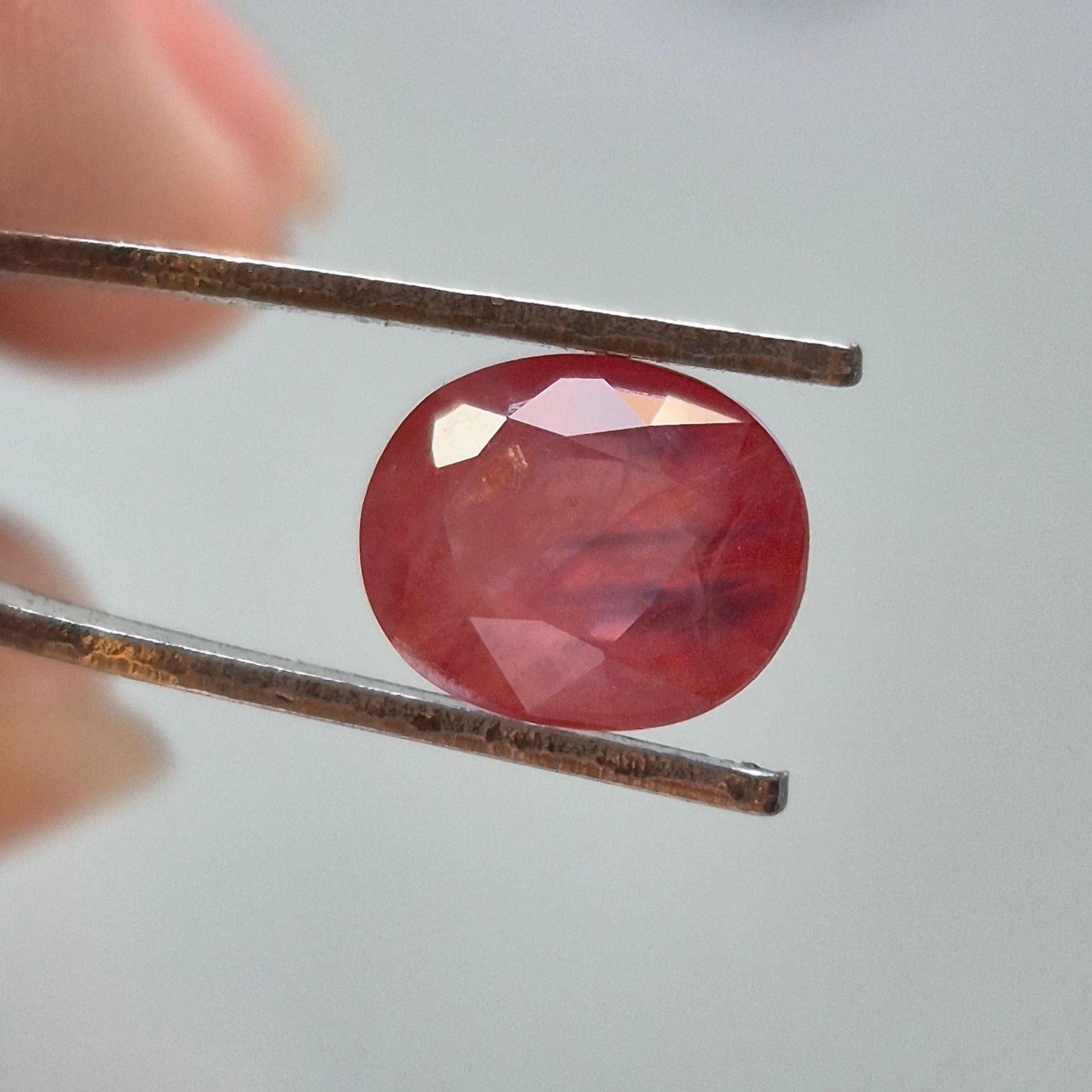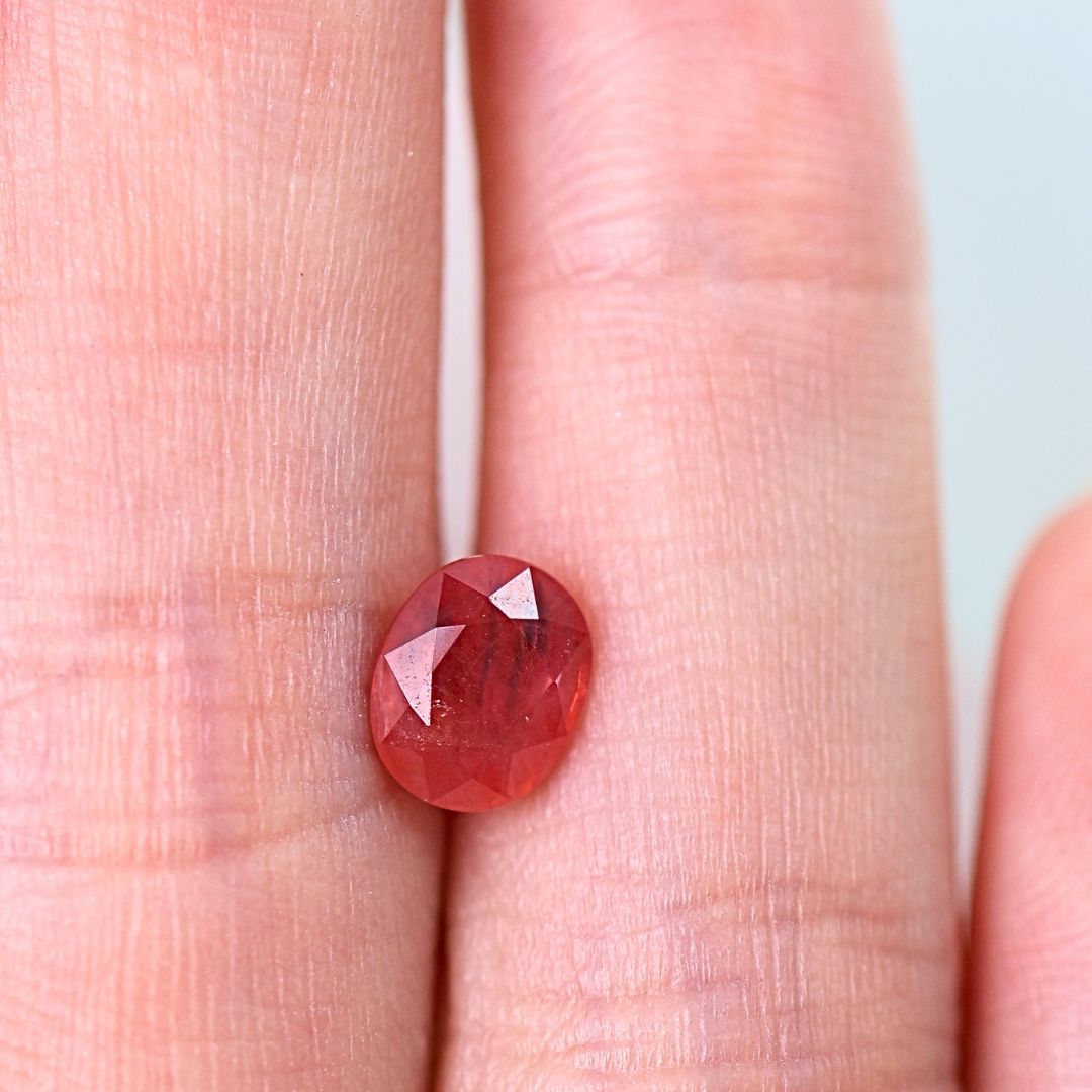 Looking for something special? This 1.71ct Oval cut Sapphire is an absolutely unique stone, a deep Pinkish Orange with streaks of Blue, it's 7.5 x 6mm in size, heat treated, from Tanzania.