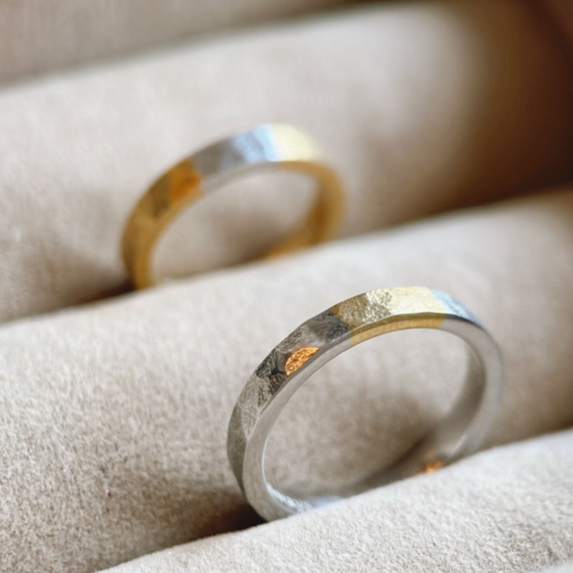 Available in Silver, Gold Vermeil, 14k gold, and 18k gold. Find out the perfect band for you by playing around with the color, width, and finish!