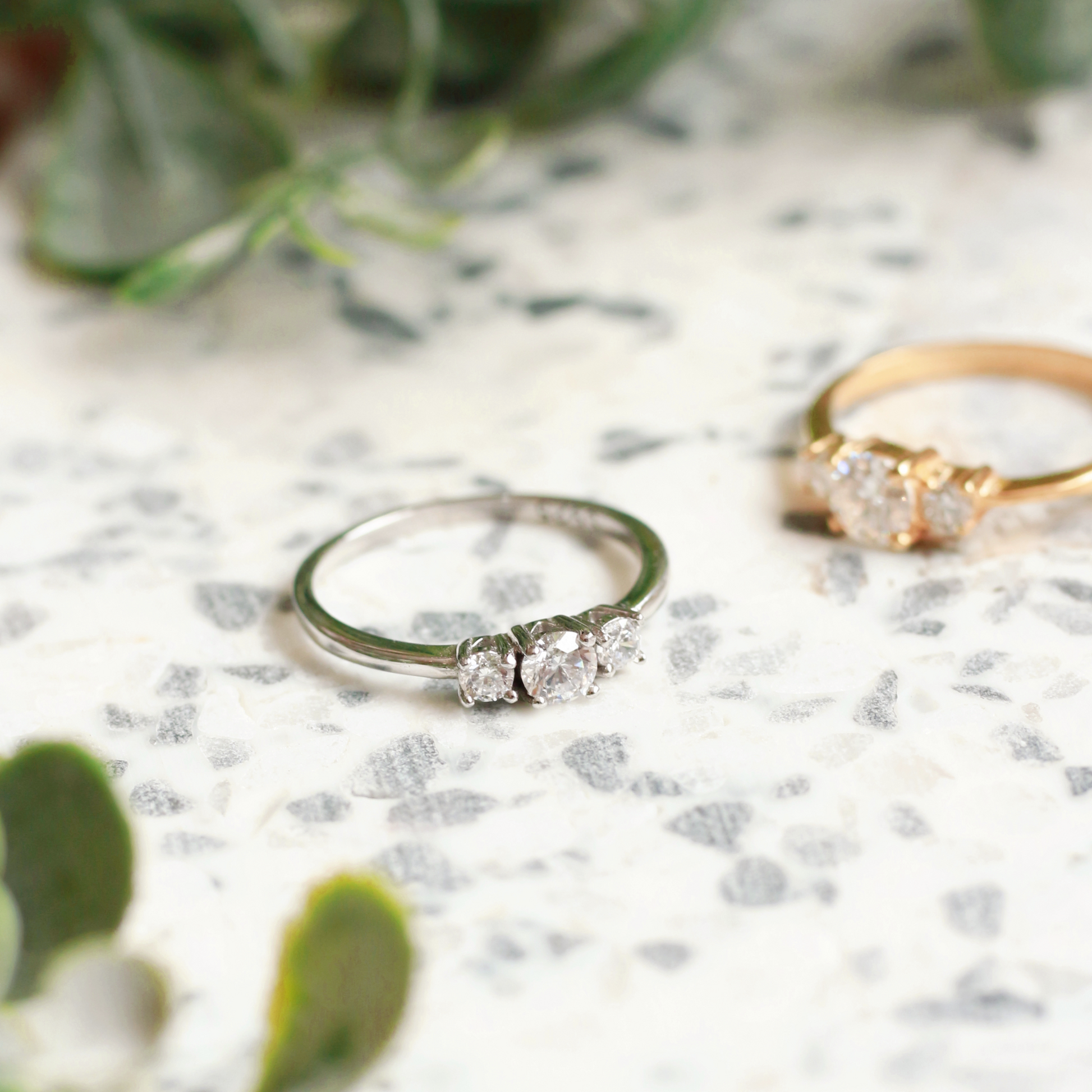 Our London Trilogy Engagement Ring is the perfect way to say "I love you" forever. Made in your choice of metal, three carefully selected stones represent your past, present, and future together. Its timeless design gives the perfect nod to traditional elegance and modern style.