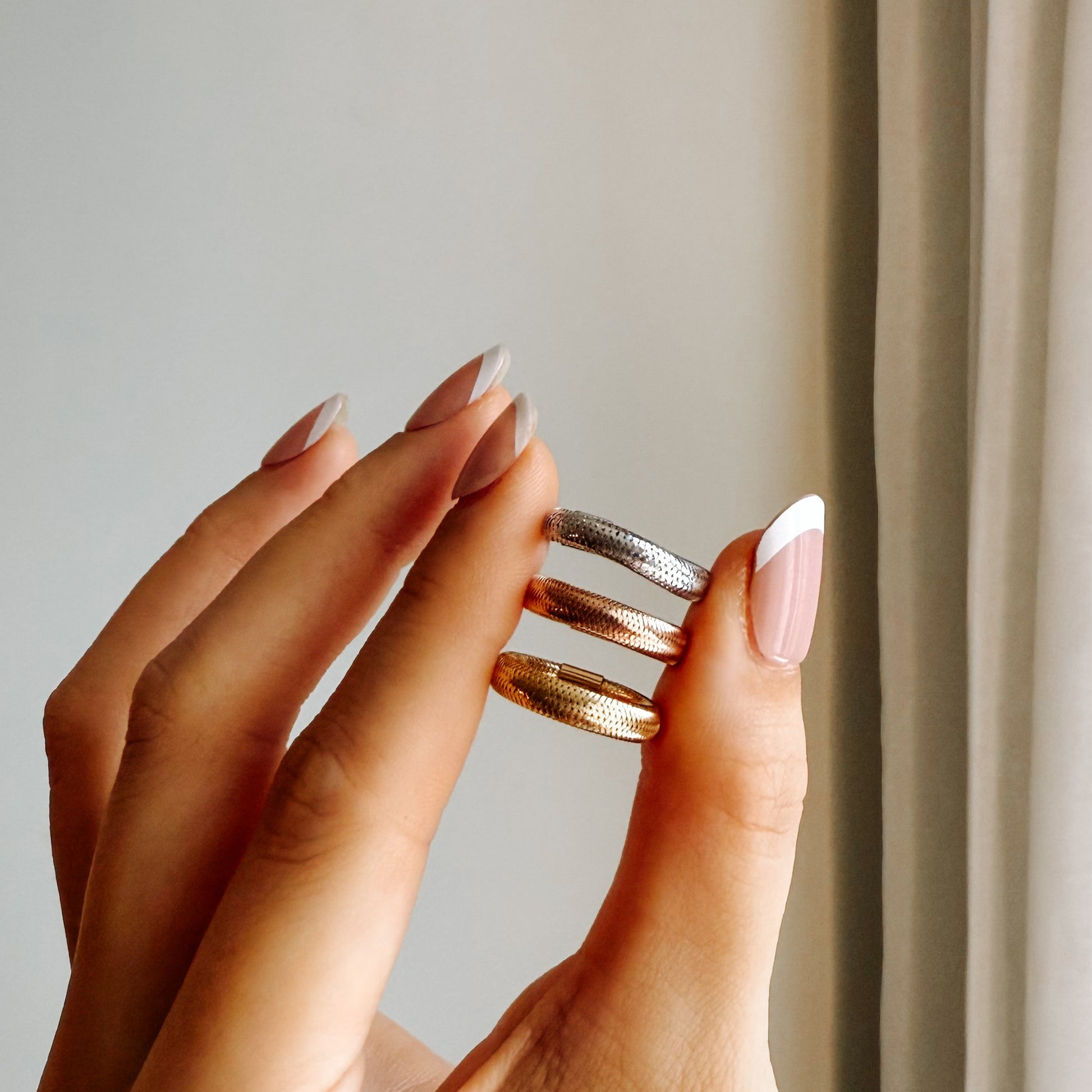 To keep your ring in perfect shape, avoid overstretching beyond the recommended size and remove it during heavy lifting, exercise, or activities where it may be strained.